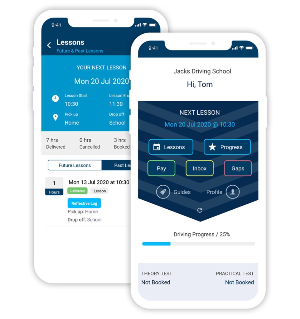 Utilising TotalDrive students are able to go entirely paperless. Booked and past lessons, payments, logs and progress records all accesible via the app.