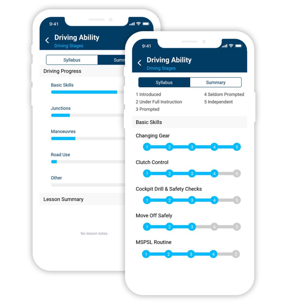 Students can stay up-to-date with their progress by seeing a full breakdown of the customisable driving syllabus for each individual skill. Students also receive an automatic message when the instructor updates their progress – encouraging them to continue using the app.